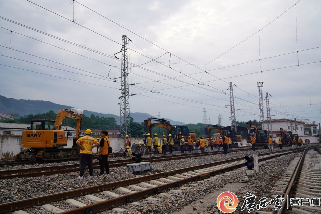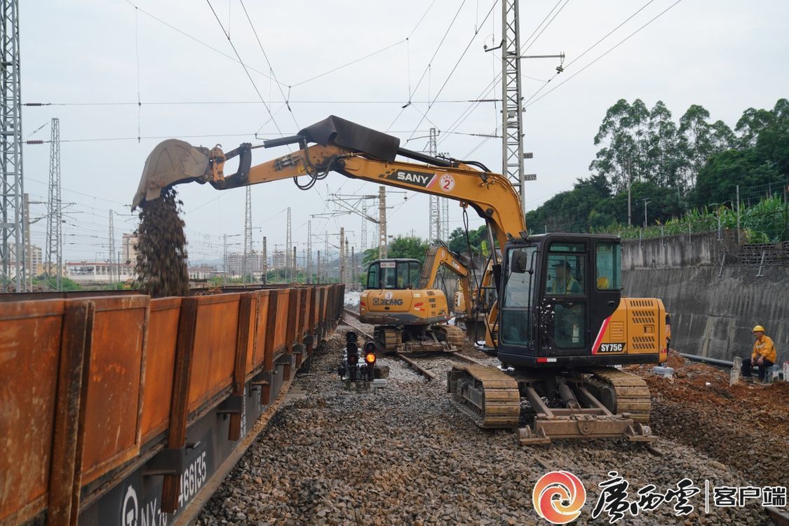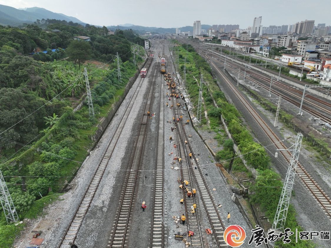 为确保集中修施工顺利开展,国铁南宁局组织百色、南宁、柳州、桂林地区工务、电务、供电等专业职工2000余人,安排桥隧清筛机、捣固车、焊轨车等66台机械设备投入施工。施工中,各专业成立专班统一管理,通过每周施工计划审定会整合资源、优化轨道车运行方案,每日例会严控安全质量与问题解决进度,实现不同专业多单位高效协作。