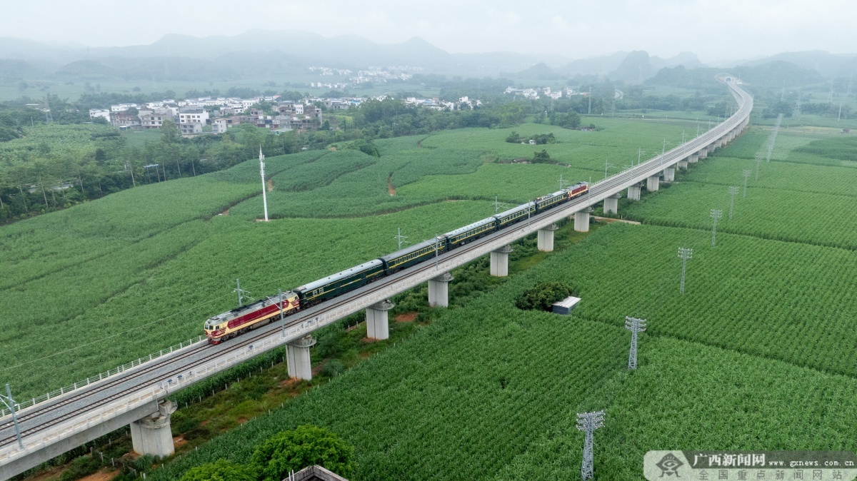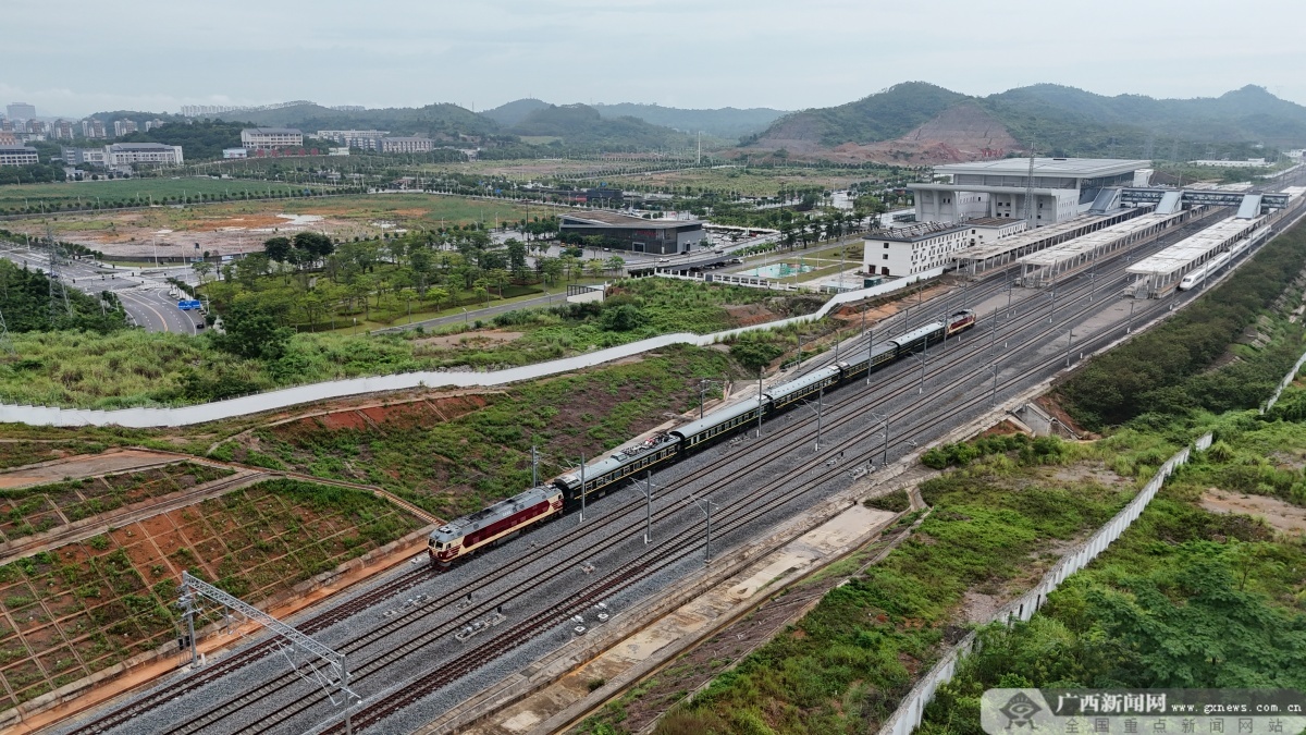 南凭高铁崇凭段联调联试检测列车正点驶出崇左南站。陈泉任 摄