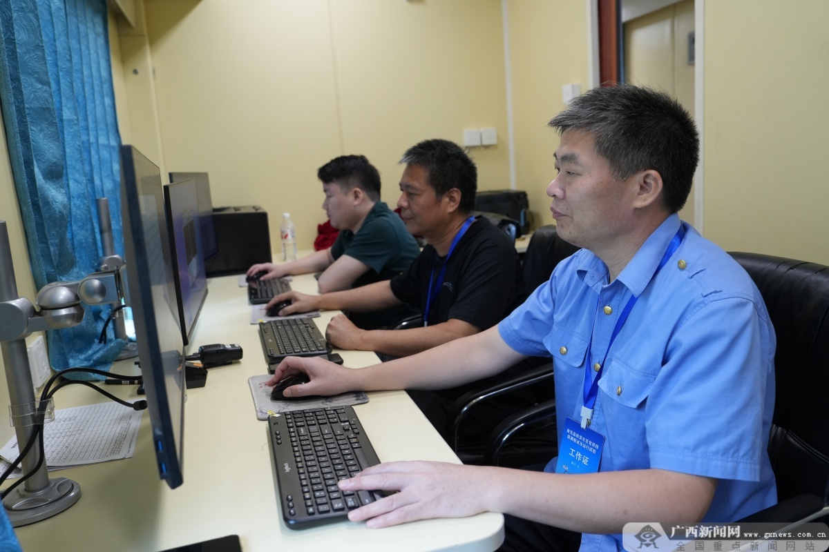 工程技术员对崇凭铁路轨道检测参数进行采集分析。吕松洋 摄