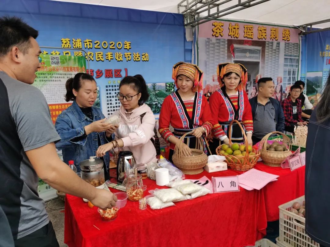 吴敬媛(左二)带领万全村村民通过电商平台销售瑶乡农副产品。