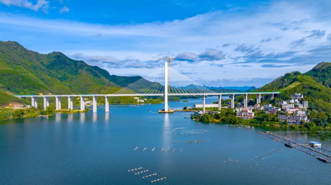 巴羌高速关键控制性工程岩滩水库特大桥。