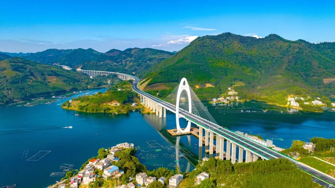 岩滩水库特大桥在区内首次采用型钢-UHPC轻型组合梁结构,并依托科研项目推进、BIM信息技术应用、智能化管理平台搭建,在大直径桩基钢护筒定位、梭形主塔、水滴形塔冠、格子梁吊装等重要施工环节开展技术创新,强化信息化、智能化、精细化管理,实现大桥合龙误差小于5毫米;
