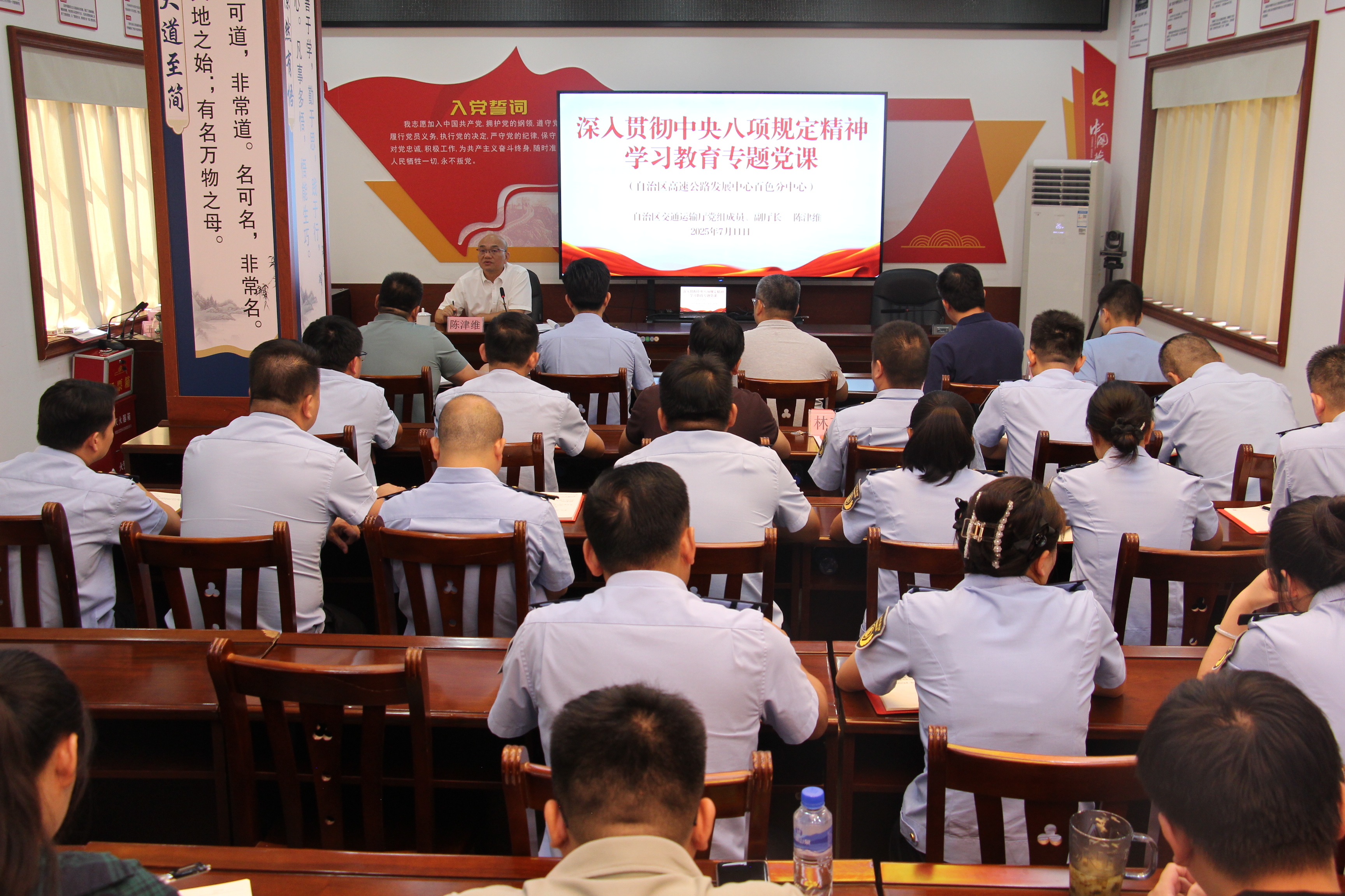 近日,嘟嘟成人网 党组成员、副厅长陈津维到基层联系点自治区高速公路发展中心百色分中心讲授深入贯彻中央八项规定精神学习教育专题党课。